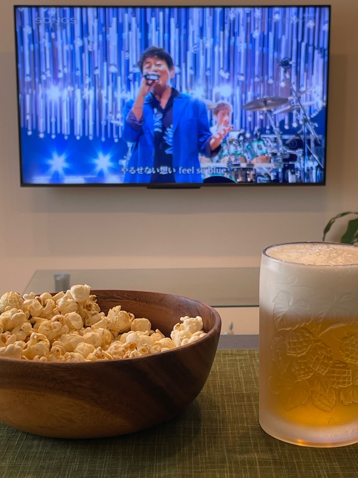 秋味を空けたら、録画してたNHK『SONGS』のTUBEを観ながら🌊一番搾り🍺